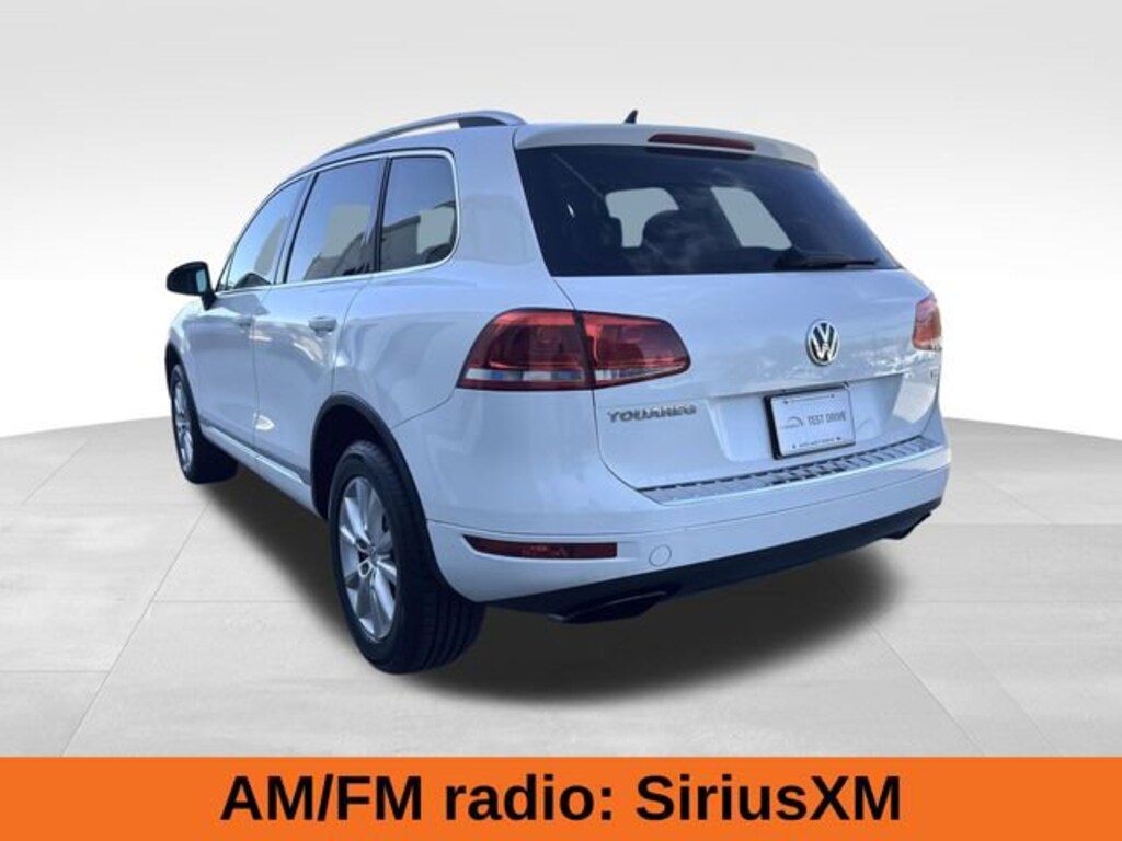 Recent Arrival! Pure White 2013 Volkswagen Touareg VR6 FSI Sport 3.6L V6 DOHC 8-Speed Automatic AWD Black Anthracite w/Vienna Leather Seating Surfaces, 18 x 8 Karakum Alloy Wheels, 3.70 Axle Ratio, 4-Wheel Disc Brakes, AM/FM radio: SiriusXM, Automatic temperature control, Brake assist, Compass, Delay-off headlights, Driver vanity mirror, Electronic Stability Control, Four wheel independent suspension, Front Bucket Seats, Front dual zone A/C, Front reading lights, Fully automatic headlights, Garage door transmitter: HomeLink, Heated Front Bucket Seats, Heated front seats, Illuminated entry, Leather Shift Knob, Panic alarm, Passenger door bin, Power driver seat, Power Liftgate, Power passenger seat, Power windows, Radio data system, Rain sensing wipers, Remote keyless entry, Security system, Speed control, Split folding rear seat, Telescoping steering wheel, Traction control, Variably intermittent wipers.