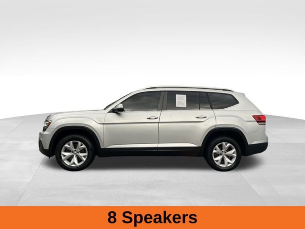 Reflex Silver Metallic 2018 Volkswagen Atlas 3.6L V6 SE 4Motion 3.6L VR6 8-Speed Automatic with Tiptronic AWD 3.60 Axle Ratio, 3rd row seats: split-bench, 4-Wheel Disc Brakes, 8 Speakers, ABS brakes, AM/FM radio: SiriusXM, Compass, Driver door bin, Driver vanity mirror, Dual front side impact airbags, Electronic Stability Control, Emergency communication system: VW Car-Net, Exterior Parking Camera Rear, Front anti-roll bar, Front Bucket Seats, Front Center Armrest, Front fog lights, Heated Front Bucket Seats, Heated front seats, Illuminated entry, Occupant sensing airbag, Passenger door bin, Power door mirrors, Power driver seat, Power steering, Power windows, Radio data system, Rear air conditioning, Rear reading lights, Rear seat center armrest, Roof rack: rails only, Security system, Speed control, Spoiler, Standard Suspension, Traction control, Turn signal indicator mirrors, V-Tex Leatherette Seating Surfaces, Wheels: 18 Prisma Alloy.