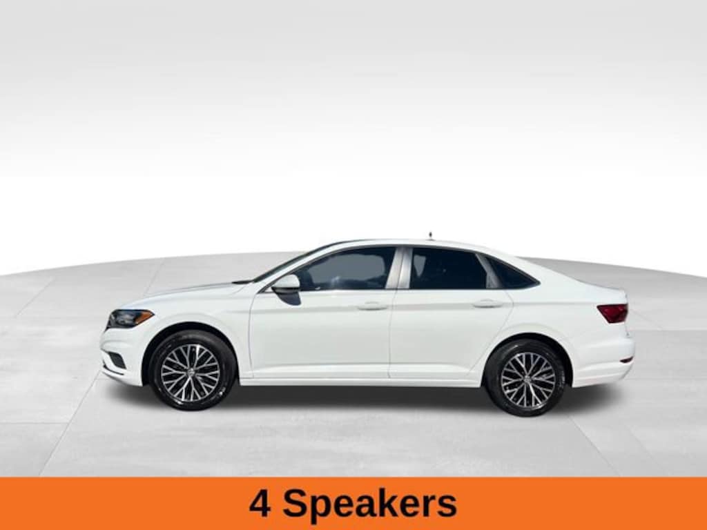 Pure White 2021 Volkswagen Jetta 1.4T SE 1.4L TSI 8-Speed Automatic FWD Titan Black w/Cloth Seat Trim, 4 Speakers, AM/FM radio, Electronic Stability Control, Exterior Parking Camera Rear, First Aid Kit, Front Bucket Seats, Front Center Armrest, Illuminated entry, Panic alarm, Passenger door bin, Power door mirrors, Power steering, Power windows, Radio data system, Rear window defroster, Remote keyless entry, Speed control, Split folding rear seat, Traction control, Wheels: 16 2-Tone Machined Alloy.