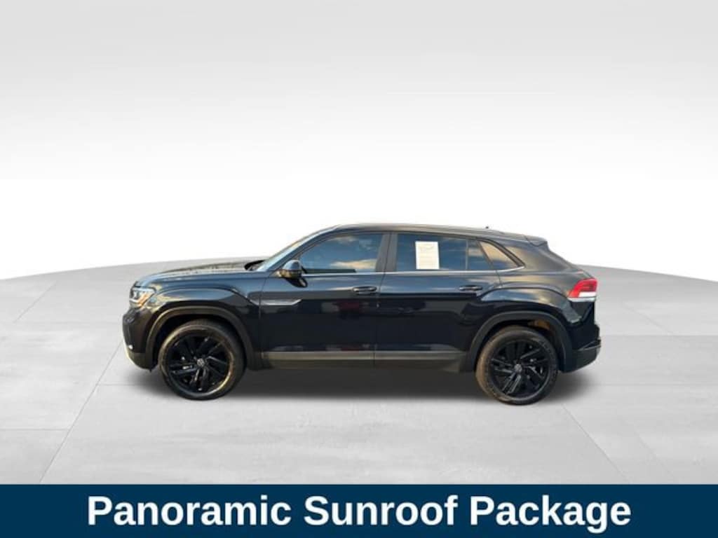 Deep Black Pearl 2022 Volkswagen Atlas Cross Sport 3.6L V6 SE w/Technology 3.6L VR6 8-Speed Automatic with Tiptronic FWD 3.60 Axle Ratio, 6 Speakers, ABS brakes, AM/FM radio: SiriusXM with 360L, Auto-dimming Rear-View mirror, Black Wheel Package, Brake assist, Bumpers: body-color, Delay-off headlights, Driver door bin, Electronic Stability Control, Exterior Parking Camera Rear, First Aid Kit, Front Bucket Seats, Front Center Armrest, Front dual zone A/C, Fully automatic headlights, Heated Comfort Front Bucket Seats, Heated front seats, Heavy Duty Trunk Liner w/VW CarGo Blocks, Illuminated entry, Leather Shift Knob, Low tire pressure warning, Overhead console, Panic alarm, Panoramic Sunroof Package, Passenger door bin, Perforated V-Tex Leatherette Seating Surfaces, Power driver seat, Power Liftgate, Power Tilting & Sliding Panoramic Sunroof, Power windows, Privacy Cover, Rain sensing wipers, Rear reading lights, Rear window wiper, Remote keyless entry, Roof rack: rails only, Security system, Speed control, Split folding rear seat, Steering wheel mounted audio controls, Telescoping steering wheel, Traction control, Variably intermittent wipers, Wheels: 20 x 8J 5-Spoke Black Painted Alloy.