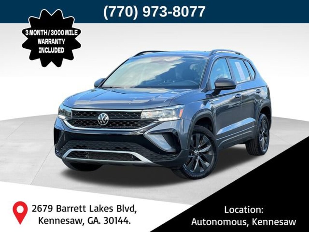 Platinum Gray Metallic 2022 Volkswagen Taos 1.5T S 1.5L I4 Turbocharged DOHC 16V LEV3-SULEV30 158hp 8-Speed Automatic with Tiptronic FWD 17 Silver Alloy Wheels, 3.23 Axle Ratio, 6 Speakers, ABS brakes, Active Blind Spot Monitor, Adaptive Cruise Control (ACC) w/Stop & Go, AM/FM radio, Automatic Rain-Sensing Front Wipers, Cloth Seating Surfaces, Compass, Driver door bin, Electronic Stability Control, Emergency Assist, Exterior Parking Camera Rear, Front Assist, Front Bucket Seats, Front Center Armrest, Fully automatic headlights, Hands-On Detection Sensor Steering Wheel, Heated Leatherette-Wrapped Steering Wheel, Illuminated entry, IQ.DRIVE S Package, Lane Assist (Lane Keeping System), Leather-Trimmed Shifter, Light Assist (High Beam Control), Passenger door bin, Radio data system, Rear Traffic Alert, Roof rack: rails only, S Convenience Package, Spoiler, Travel Assist (Semi-Automated Driving Assistance).