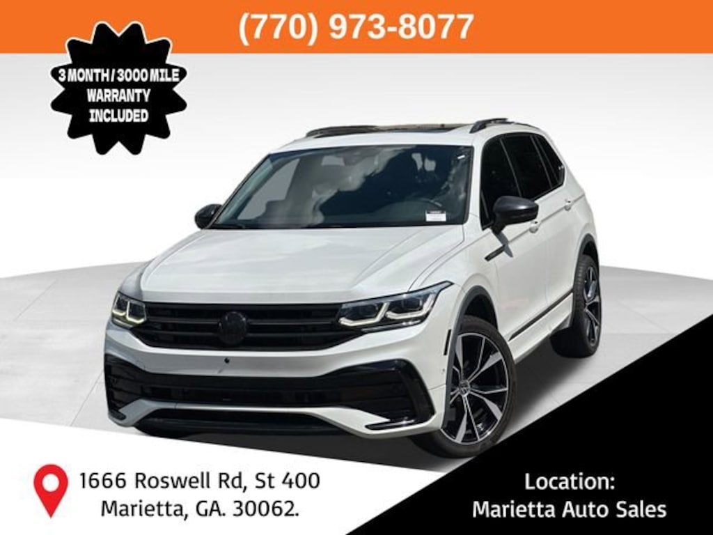 Pure White 2022 Volkswagen Tiguan 2.0T SEL R-Line 2.0L TSI DOHC 8-Speed Automatic with Tiptronic AWD AWD, 3.33 Axle Ratio, 8 Speakers, AM/FM radio: SiriusXM with 360L, Auto-dimming Rear-View mirror, Automatic temperature control, Compass, Driver door bin, Electronic Stability Control, Front anti-roll bar, Front Bucket Seats, Front Center Armrest, Front dual zone A/C, Illuminated entry, Navigation system: VW Car-Net Guide & Inform, Passenger door bin, Perforated Vienna Leather Seating Surfaces, Power Liftgate, Power Sunroof, Power windows, Remote keyless entry, Roof rack: rails only, Security system, Speed control, Spoiler, Traction control, Turn signal indicator mirrors, Ventilated front seats, Wheels: 20 Machined Black Alloy.